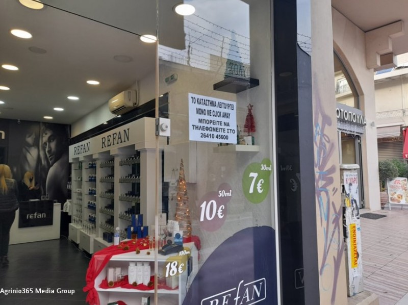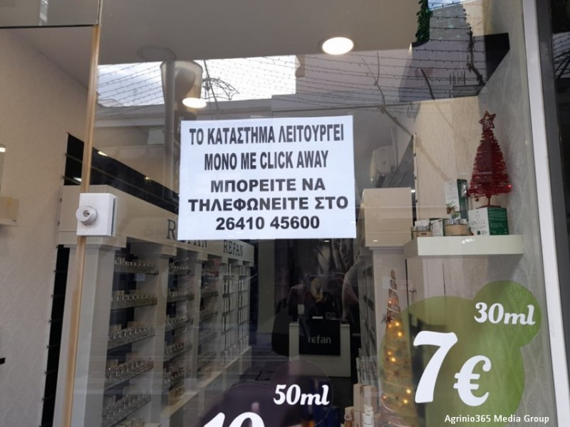 Παρά το γεγονός ότι ο κόσμος τόσο καιρό δεν μπορούσε να κάνει τις αγορές του, από σήμερα έχει αυτή τη δυνατότητα μέσω «Click Away». Όμως η υποδομή για την συγκεκριμένη διαδικασία στο Αγρίνιο είναι σχεδόν ανύπαρκτη, καθώς τα τοπικά καταστήματα δεν διαθέτουν e-shop και οι καταναλωτές μπορούν να εξυπηρετούνται μόνο κλείνοντας τηλεφωνικό ραντεβού με το κατάστημα από το οποίο επιθυμούν να ψωνίσουν.