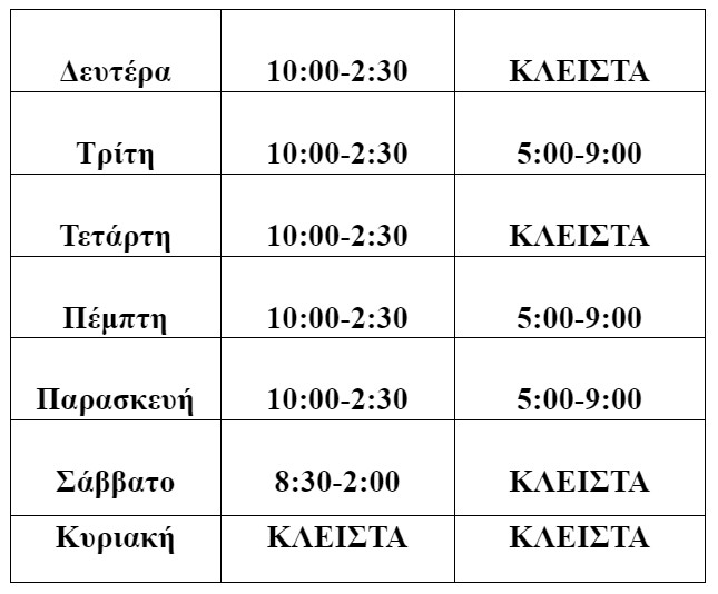 ΠΡΟΣΩΡΙΝΟ ΩΡΑΡΙΟ ΛΕΙΤΟΥΡΓΙΑΣ ΑΠΟ 22-11-2021 έως 4 -12-2021