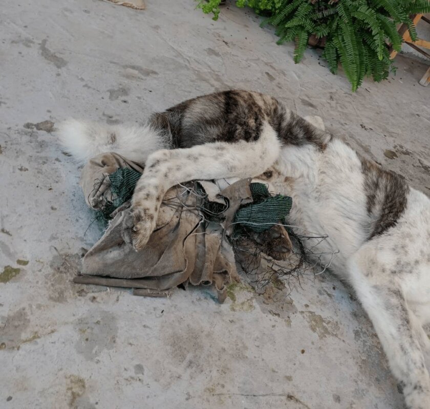 Όπως διαπιστώθηκε, ο σκύλος έφερε σοβαρά τραύματα, καθώς το ένα του πόδι ήταν μπλεγμένο με σύρματα, γεγονός που δυσχέραινε την κίνησή του και πιθανότατα του προκαλούσε έντονο πόνο και πανικό.