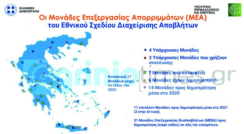 Με δεδομένο ότι 6 μονάδες έχουν ήδη δημοπρατηθεί (Ζάκυνθος, Λευκάδα, Ναύπακτος, Τρίκαλα, Κέρκυρα, Χερσόνησο) και άλλες 7 βρίσκονται σε στάδιο κατασκευής (Αλεξανδρούπολη, Θήβα, Ηλεία, Αμάρι, Αρκαδία, Μεσσηνία, Λακωνία), προβλέπεται ότι έως το τέλος του 2023 θα έχουν κατασκευαστεί 27 Μονάδες Επεξεργασίας Απορριμμάτων σε όλη την Ελλάδα.