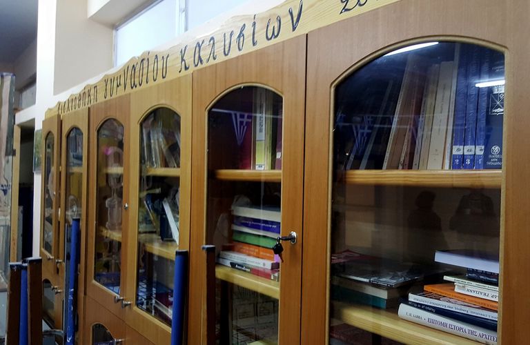 Η Βιβλιοθήκη του Γυμνασίου Καλυβίων που οργανώθηκε πριν 5 χρόνια από τον νυν Γυμνασιάρχη κα. Ε. Πίτσα και οι προθήκες της κατασκευάστηκαν από τον πρώην καθηγητή Ηλ. Γουργολίτσα, διαθέτει πλήθος βιβλίων, φιλολογικών, επιστημονικών και γενικών γνώσεων, ενώ θα λέγαμε ότι, λειτουργεί ως ένα μοναδικό «όχημα» μάθησης, ψυχαγωγίας και προσωπικής προόδου, μέσα από την οποία προωθείται η τόσο αναγκαία υπόθεση της παιδείας και του πολιτισμού, που παραγνωρίζονται στις μέρες μας όσο ποτέ άλλοτε…