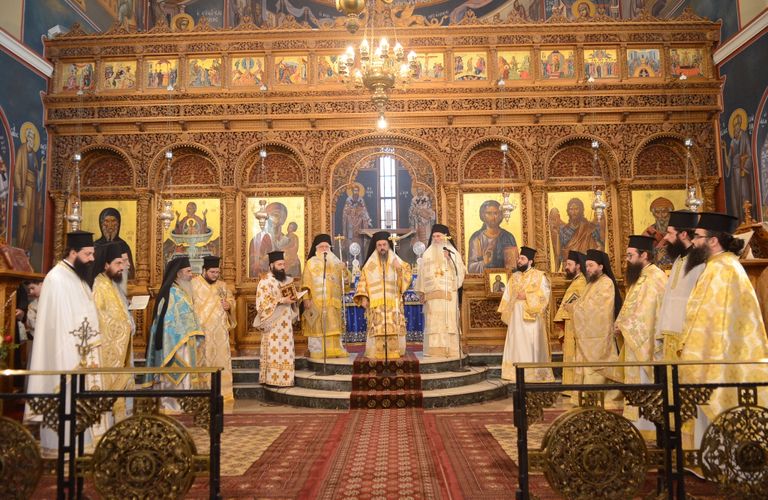Στην Ακολουθία του Όρθρου χοροστάτησε ο Μητροπολίτης Δημητριάδος και Αλμυρού κ. Ιγνάτιος, ο οποίος προεξήρχε στην Τρισαρχιερατική Θεία Λειτουργία, συλλειτουργούντων του Μητροπολίτου Μεσογαίας και Λαυρεωτικής κ. Νικολάου και του Ποιμενάρχου μας, Μητροπολίτου Αιτωλίας και Ακαρνανίας κ. Δαμασκηνού.