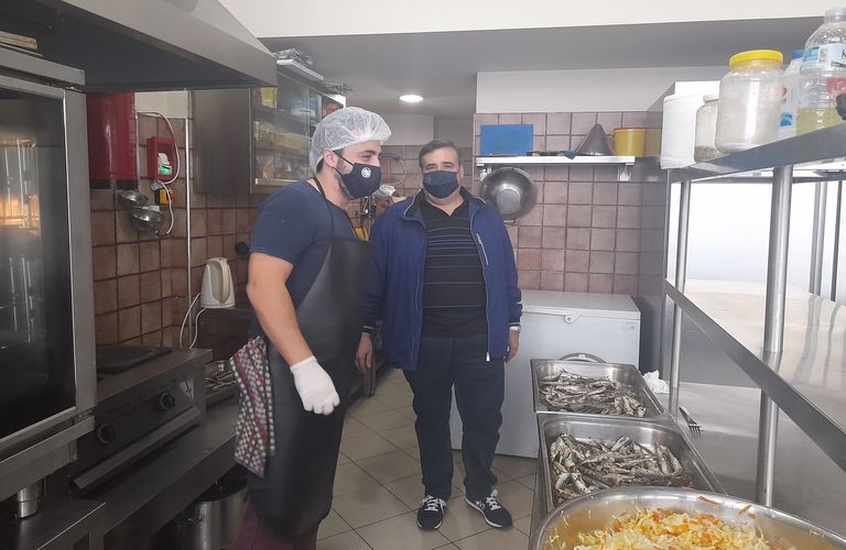 Όλα αυτά, υπό την επίβλεψη του κ. Κώστα Καλατζή, αντιδημάρχου Αγρινίου, αρμόδιου για θέματα Κοινωνικής Προστασίας και Δημόσιας Υγείας, ο οποίος με καλωσορίζει και με οδηγεί στο βάθος της μεγάλης αίθουσας όπου παρασκευάζεται το φαγητό.