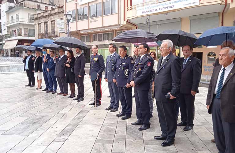 Αμέσως μετά πραγματοποιήθηκε επιμνημόσυνη δέηση και κατάθεση στεφάνων στο μνημείο των Πεσόντων στην πλατεία Μαρίας Δημάδη από τον Αντιδήμαρχο Αγρινίου Κώστα Καλαντζή, την πρόεδρο της Κοινότητας Αγρινίου Φωτεινή Βλάχου, τον Αστ. Δντη Δημήτρη Γαλαζούλα, τον εκπρ. Ανωτέρου Διοικητή Φρουράς Μεσολογγίου Γρ. Γιώτη, τον Διοικητή Αεροπορικού Φυλακίου Αγρινίου Κ. Σδούκο, τον Διοικητή ΠΥ Αγρινίου Ευστράτιο Πετράκη, τον πρ. της Ένωσης Αποστράτων Αξ. Αιτ/νιας Κ. Τσάτζαλο, τον εκπρ. Συνδέσμου Αποστράτων Σωμάτων Ασφαλείας Αγρινίου Δ. Τσούνη, τον εκπρ. του Αν. Σύνδεσμου Εφέδρων Κ. Λιάπης.