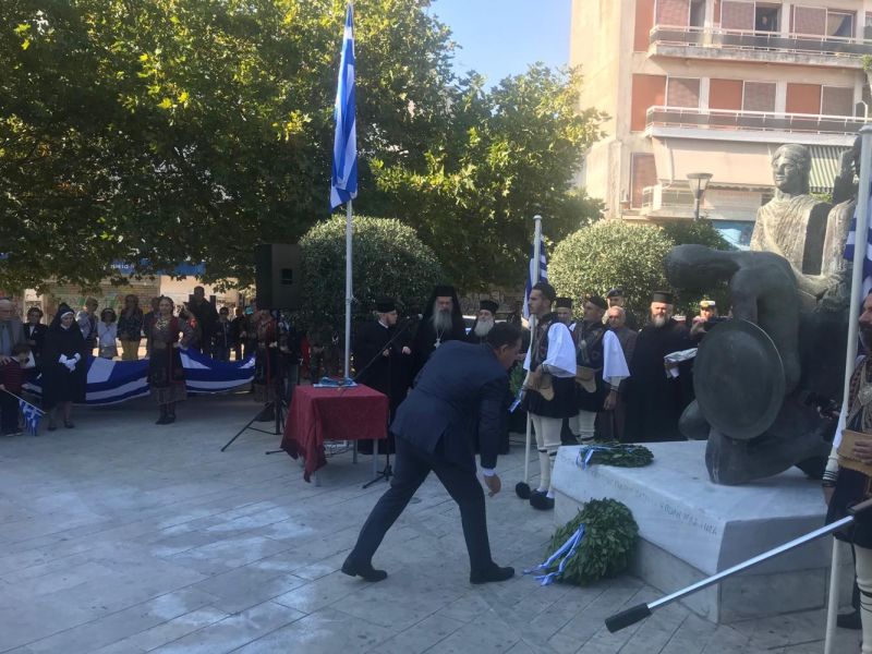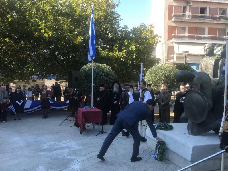 Μετά την τέλεση της επίσημης Δοξολογίας στη Μητρόπολη και την εκφώνηση του Πανηγυρικού της ημέρας ακολούθησε επιμνημόσυνη δέηση και κατάθεση στεφάνων στο Μνημείο των Πεσόντων στην Πλατεία Μαρίας Δημάδη στο Αγρίνιο.