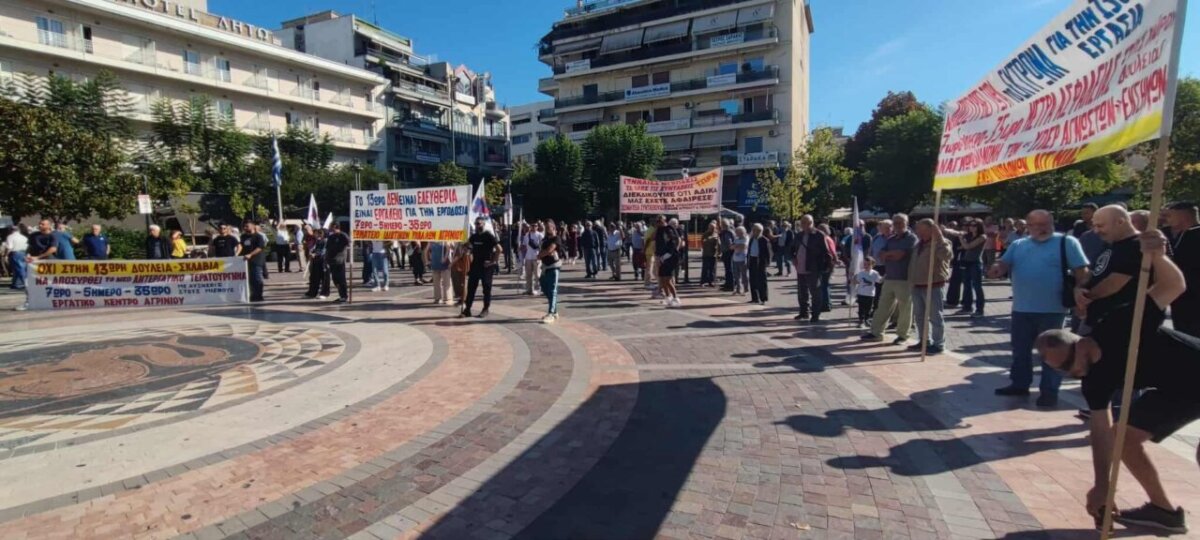 Δυναμικό «παρών» έδωσαν το πρωί της Τετάρτης, 1ης Οκτωβρίου, εργαζόμενοι, Σωματεία, Φορείς και πολίτες στην πλατεία Δημοκρατίας στο Αγρίνιο, συμμετέχοντας στην πανελλαδική απεργία και διαμαρτυρόμενοι για το νέο εργασιακό νομοσχέδιο.