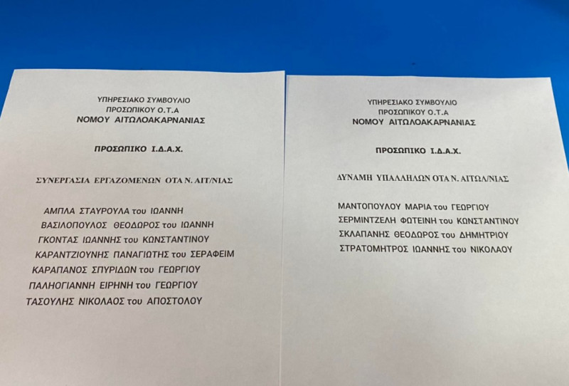 Συμμετέχουν συνολικά πέντε συνδυασμοί, αυτός του νυν Προέδρου Θύμιου Κομματά με τον συνδυασμό «Συνεργασία Εργαζομένων Ο.Τ.Α. Νομού Αιτωλοακαρνανίας – Μόνιμο Προσωπικό» καθώς επίσης και οι: «Δύναμη Υπαλλήλων Ο.Τ.Α. Νομού Αιτωλοακαρνανίας – Μόνιμο Προσωπικό», «Δημοκρατική Αγωνιστική Συνεργασία Ο.Τ.Α. Νομού Αιτωλοακαρνανίας – Μόνιμο Προσωπικό», «Συνεργασία Εργαζομένων Ο.Τ.Α. Ν. Αιτωλοακαρνανίας – Προσωπικό Ι.Δ.Α.Χ.» και «Δύναμη Υπαλλήλων Ο.Τ.Α. Ν. Αιτωλοακαρνανίας – Προσωπικό Ι.Δ.Α.Χ.»
