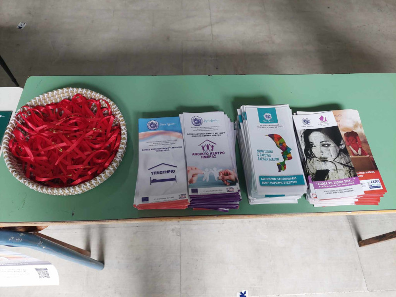 Με αφορμή την Παγκόσμια Ημέρα κατά του HIV/AIDS στην ενημερωτική δράση παρευρέθηκαν: Το προσωπικό του Πολυδύναμου Κέντρου και της ΜΟΘΕ του Ο.ΚΑ.ΝΑ. Αγρινίου σε συνεργασία με το προσωπικό των Κοινωνικών Δομών Δήμου Αγρινίου και το Κοινωνικό Ιατρείο της Διεύθυνσης Κοινωνικής Προστασίας & Δημοσίας Υγείας με στόχο την ευαισθητοποίηση και την ενημέρωση των πολιτών μέσω της δωρεάν διανομής προφυλακτικών και έντυπου υλικού του συλλόγου οροθετικών «Θετική Φωνή».