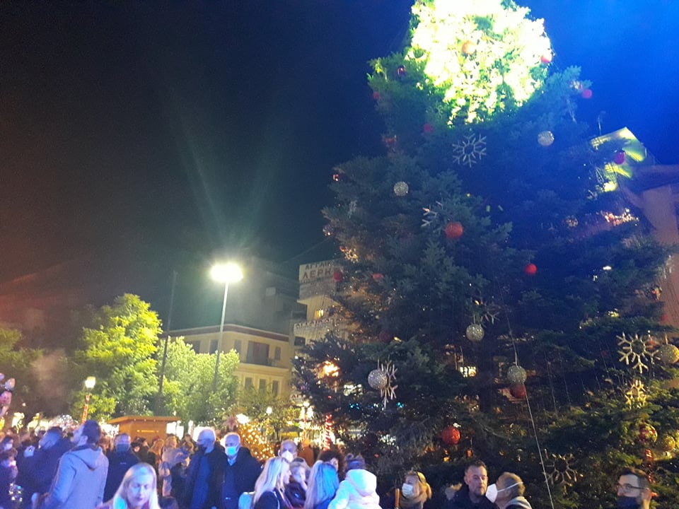 Το εντυπωσιακό Χριστουγεννιάτιο Δέντρο, το οποίο τοποθετήθηκε και στολίστηκε από τα συνεργεία του Δήμου την Τρίτη και την Τετάρτη, άναψε πριν από λίγο, σε μια ζεστή εορταστική ατμόσφαιρα.