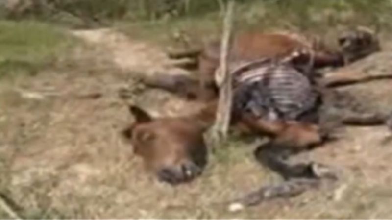 Το ένα εξ αυτών έφερε τραύματα στην πλάτη από κυνηγητικό όπλο. Πεντακόσια μέτρα πιο πέρα εντοπίστηκε ακόμη ένα άλογο νεκρό.