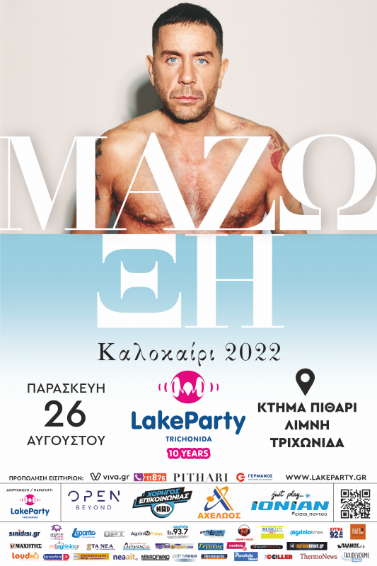 Με το ιδιαίτερο μήνυμά του «Σας ευχαριστώ που με αφήνετε να παίζω μαζί σας», ο Γιώργος Μαζωνάκης, μας καλεί στη δική του καλοκαιρινή ΜΑΖΩΞΗ, μια μαγική μουσική εμπειρία και στο επετειακό Lake Party για τα 10 χρόνια! Μαζί του, μια 30μελή ομάδα ταλαντούχων μουσικών, τραγουδιστών κι εξειδικευμένων τεχνικών, αλλά και ο Φώτης Παπαζήσης, η Τάτα και η Αναστασία, η οποία συστήθηκε στο κοινό με το τραγούδι της «Αμαρτίες».