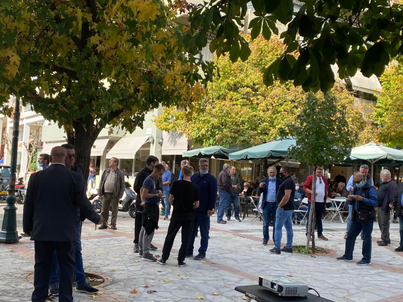 Ήδη έξω από το Παπαστράτειο Μέγαρο Αγρινίου πλήθος κόσμου έχει συγκεντρωθεί ώστε να υποδεχθεί τον Γιώργο Παπαναδρέου.