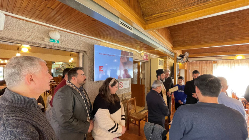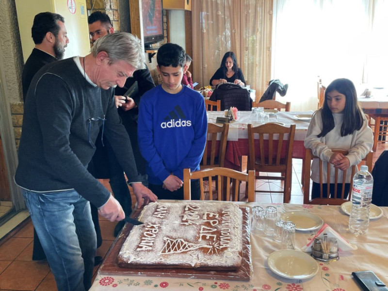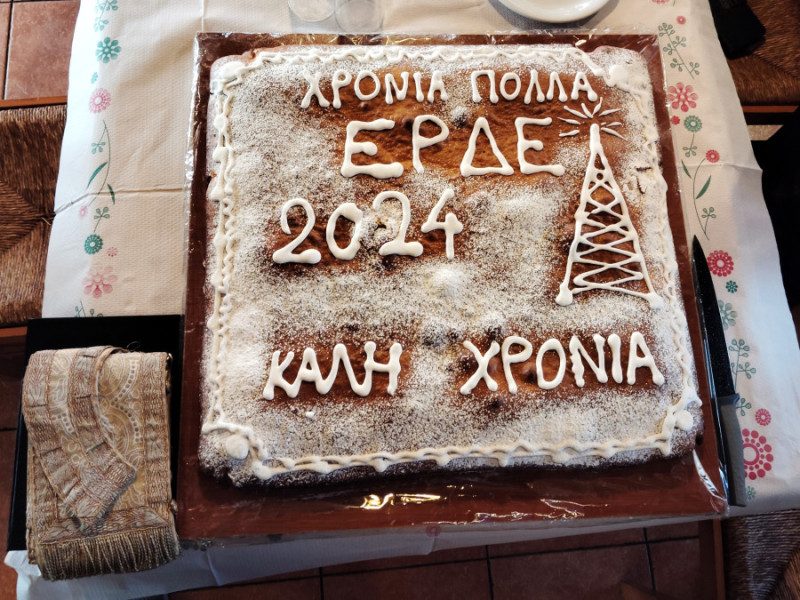 Την Πρωτοχρονιάτικη Πίτα ευλόγησε ο Πατέρας Αναστάσης, Εφημέριος του Ιερού Ναού Αγίας Βαρβάρας, ενώ ο Πρόεδρος της Ένωσης, Θανάσης Καψάλης και τα Μέλη του Διοικητικού Συμβουλίου αντάλλαξαν ευχές με όλα τα Μέλη.
