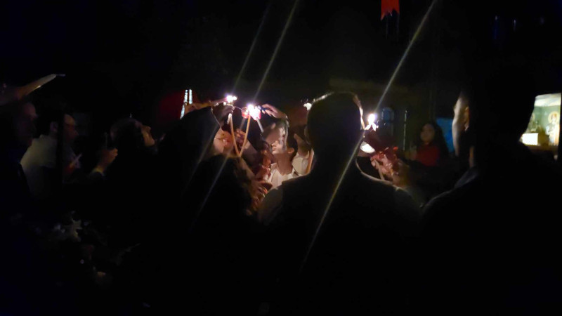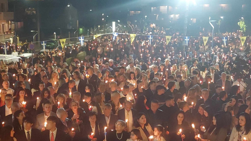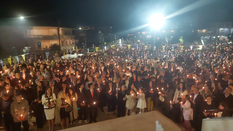 Με θρησκευτική κατάνυξη μικροί και μεγάλοι περίμεναν το Άγιο Φως για να ανάψουν τις λαμπάδες τους και στο άκουσμα τους «Χριστός Ανέστη» ο ουρανός της πόλης φωτίστηκε από πυροτεχνήματα.