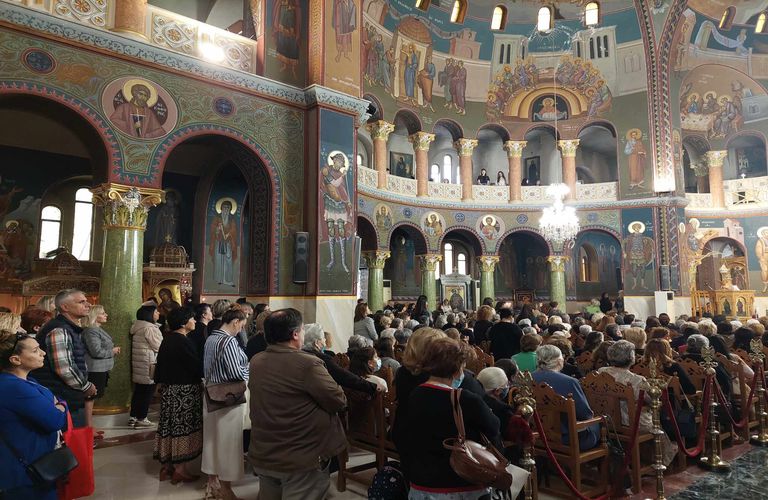 Πλήθος πιστών έσπευσε από νωρίς το πρωί να προσευχηθεί και να λάβει την ευχή του Μητροπολίτου, ανάμεσά τους ο Δήμαρχος Αγρινίου Γιώργος Παπαναστασίου, εκπρόσωποι της Αστυνομίας και της Πυροσβεστικής καθώς και μαθητές και μαθήτριες μαζί με τους εκπαιδευτικούς τους.