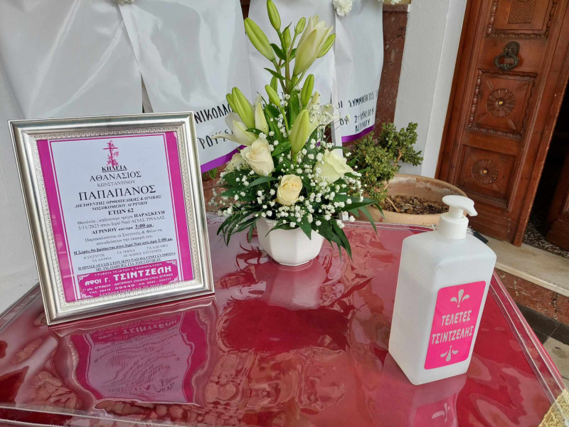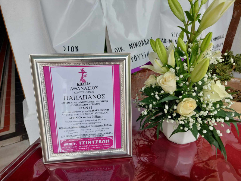Από νωρίς το μεσημέρι της Παρασκευής, συγγενείς, φίλοι, συνάδελφοι αλλά και απλός κόσμος συρρέει στον Ιερό Ναό Αγίας Τριάδος Αγρινίου για να αποχαιρετήσει τον Ιατρό, Θανάση Παπαπάνο ο ο οποίος άφησε αιφνίδια την τελευταία του πνοή το πρωί της Πέμπτης, 2 Νοεμβρίου 2023.