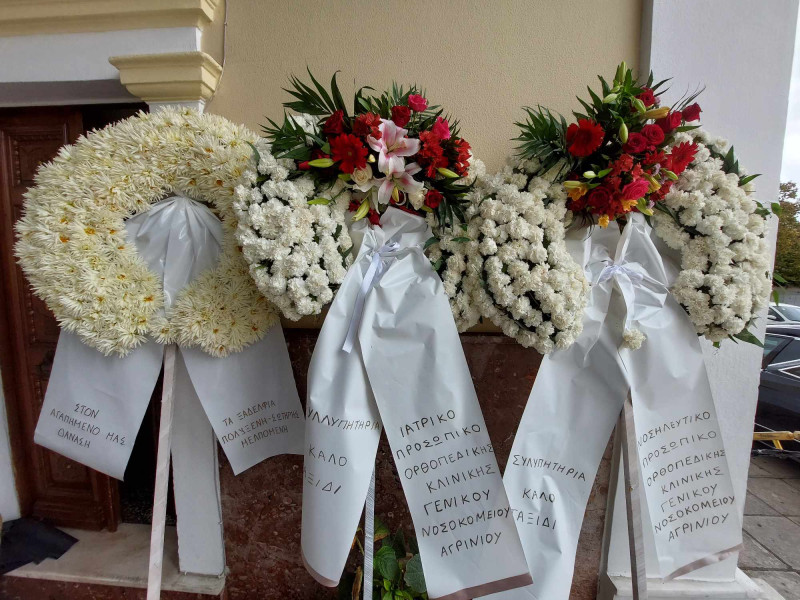 Στεφάνια, εκτός από τα συγγενικά και φιλικά του πρόσωπα, έστειλαν μεταξύ άλλων: ο Διοικητής της 6ης Υγειονομικής Περιφέρειας, το Ιατρικό και το Νοσηλευτικό Προσωπικό της Ορθοπεδικής Κλινικής του Νοσοκομείου Αγρινίου, η Ένωση Ιατρών Νοσοκομείων Αιτωλοακαρνανίας, το Σωματείο Εργαζόμενων του Νοσοκομείου Αγρινίου, το Ιπποκράτειο Ίδρυμα Αγρινίου και οι συμμαθητές του από το 2ο Λύκειο Αγρινίου.