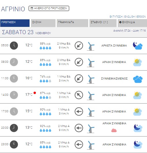 Αγρίνιο: Κατά περιόδους αυξημένες νεφώσεις – Έως 17 βαθμούς κελσίου η θερμοκρασία