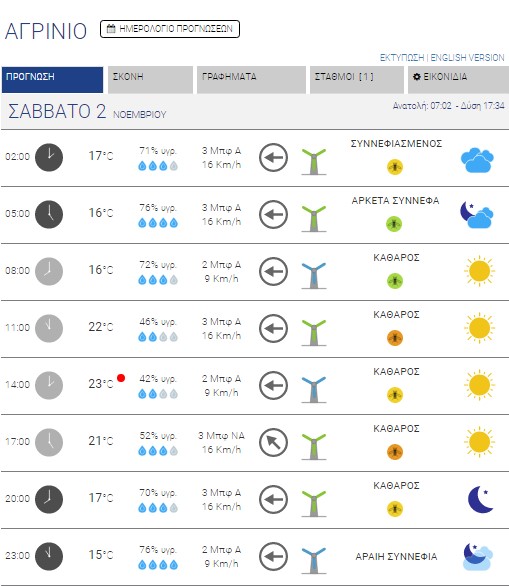 Αγρίνιο: Καθαρός ουρανός – Έως 23 βαθμούς κελσίου η θερμοκρασία