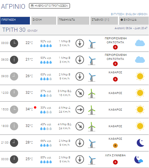 Αγρίνιο: Καθαρός ουρανός – Έως 34 βαθμούς κελσίου η θερμοκρασία