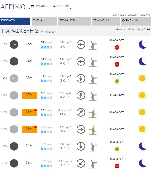 Αγρίνιο: Καθαρός ουρανός – Έως 38 βαθμούς κελσίου η θερμοκρασία