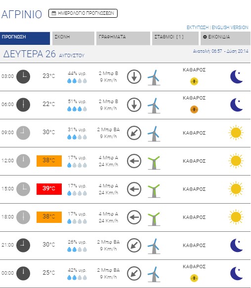 Αγρίνιο: Καθαρός ουρανός – Έως 39 βαθμούς κελσίου η θερμοκρασία