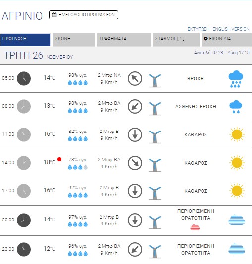 Την Τρίτη 26 Νοεμβρίου 2019 αναμένονται βροχές και σποραδικές καταιγίδες στην Κεντρική Μακεδονία, στην Ανατολική Στερεά Ελλάδα, στο Αιγαίο, στο Νότιο Ιόνιο, στη Νότια Πελοπόννησο και στην Κρήτη.
