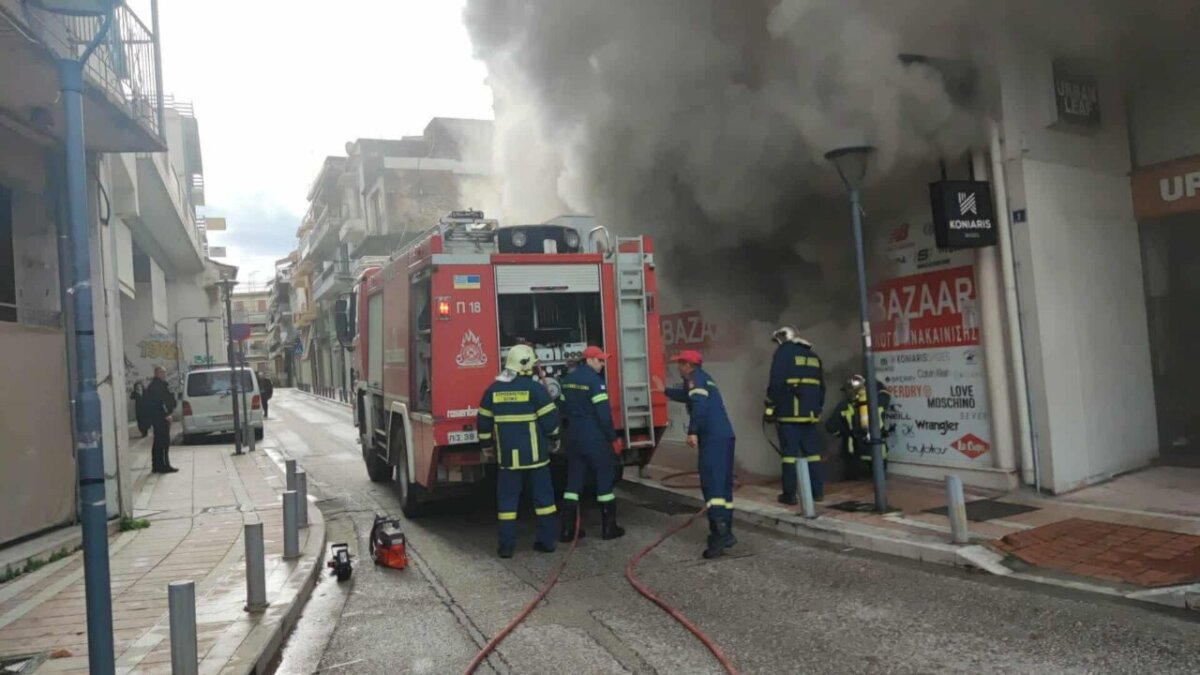 Πληροφορίες του AgrinioTimes.gr αναφέρουν πως η φωτιά που ξεκίνησε από κατάστημα υποδημάτων επεκτάθηκε και στα διπλανά καταστήματα.
