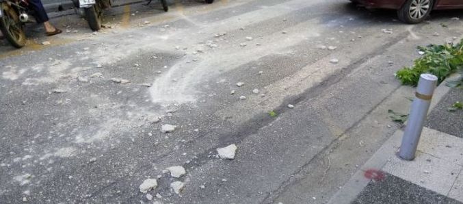Μετά την πτώση των σοβάδων από παρακείμενη πολυκατοικία που σημειώθηκε πριν λίγα λεπτά στην οδό Ι. Σταΐκου, στο Αγρίνιο,