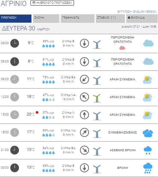 Αγρίνιο: Λίγες νεφώσεις οι οποίες βαθμιαία θα αυξηθούν