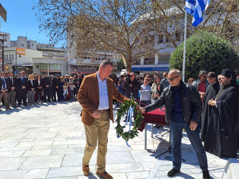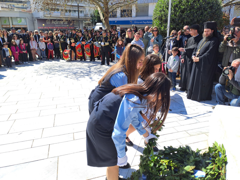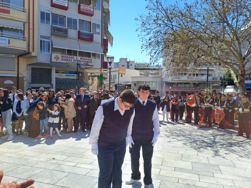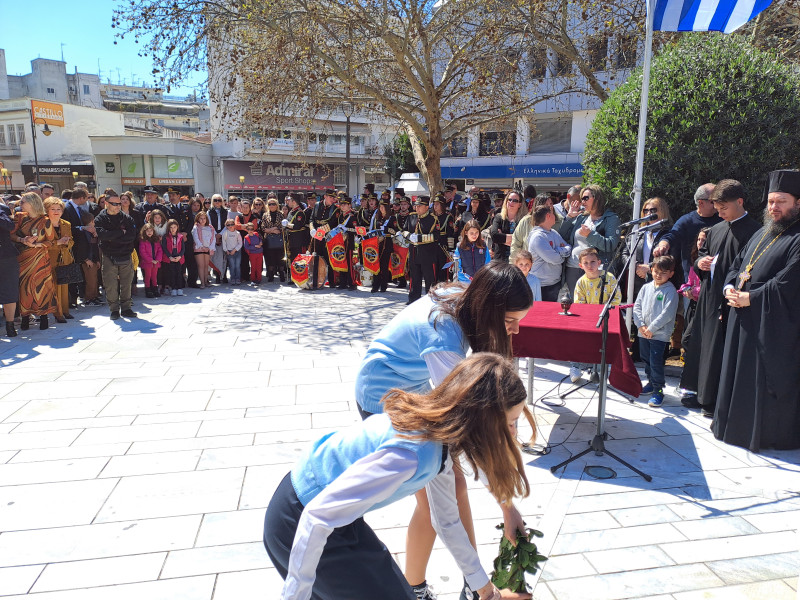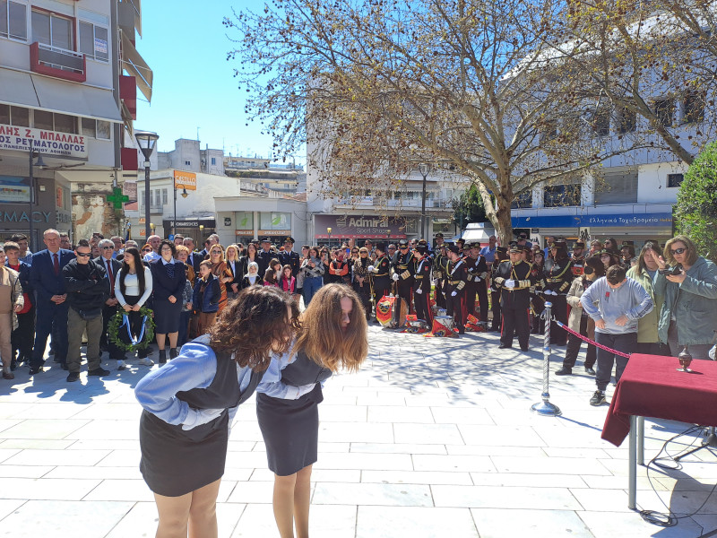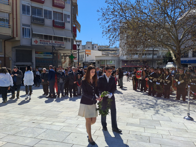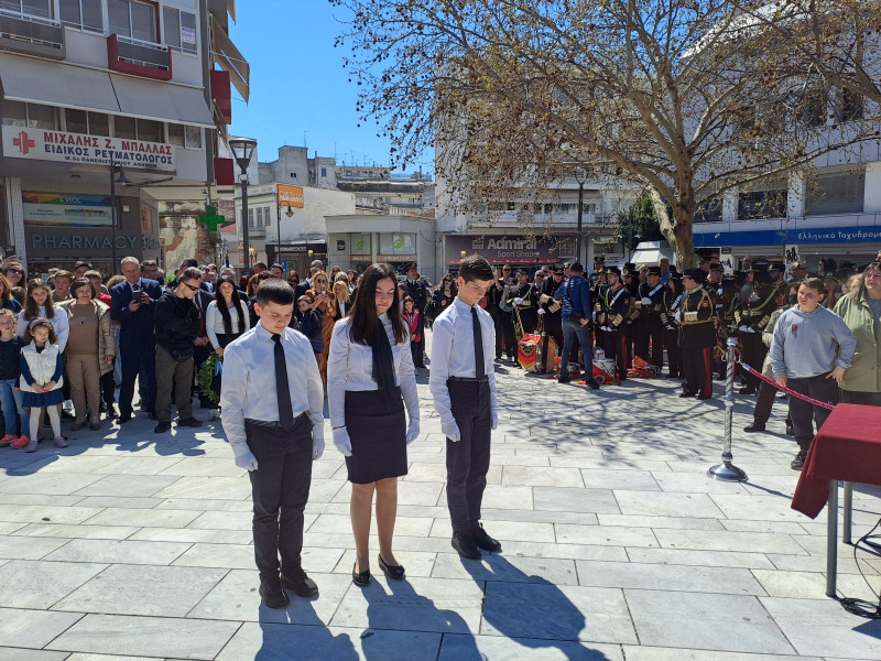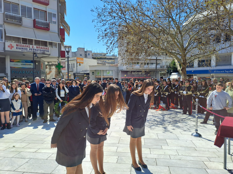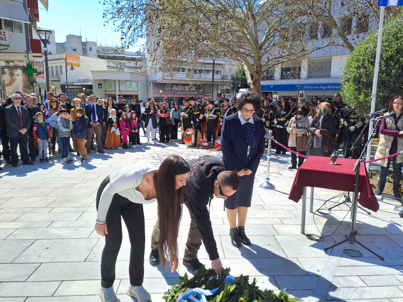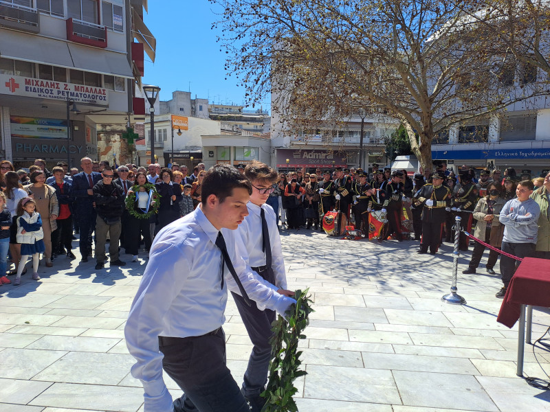 Επιμνημόσυνη δέηση και κατάθεση στεφάνων πραγματοποιήθηκε το μεσημέρι της Παρασκευής, 24 Μαρτίου 2023, στο μνημείο των Πεσόντων στην Πλατεία «Μαρία Δημάδη» από Φοιτητές των Πανεπιστημιακών Τμημάτων, Μαθητές των Σχολείων Πρωτοβάθμιας και Δευτεροβάθμιας Εκπαίδευσης, κ.λπ.