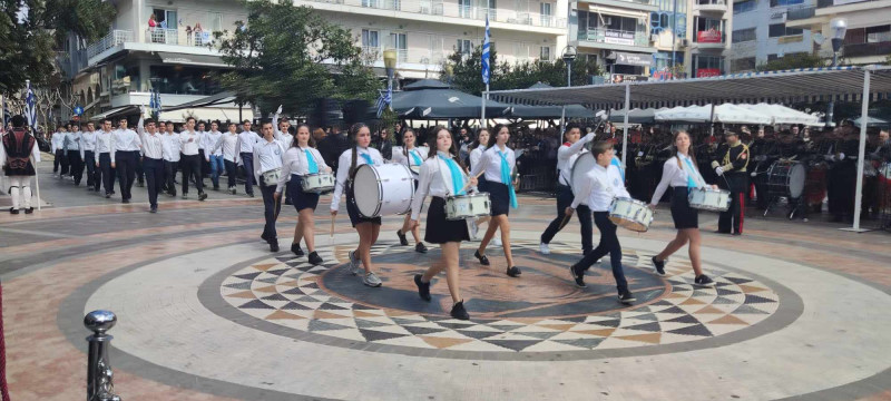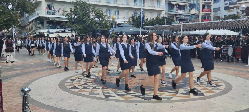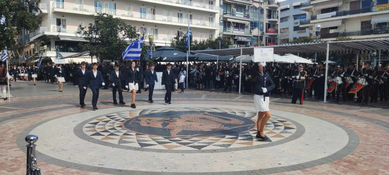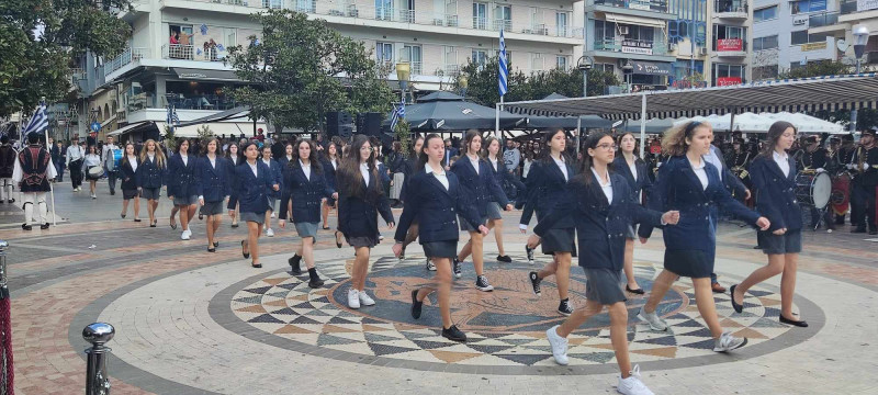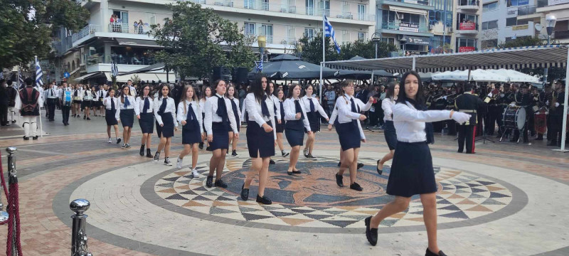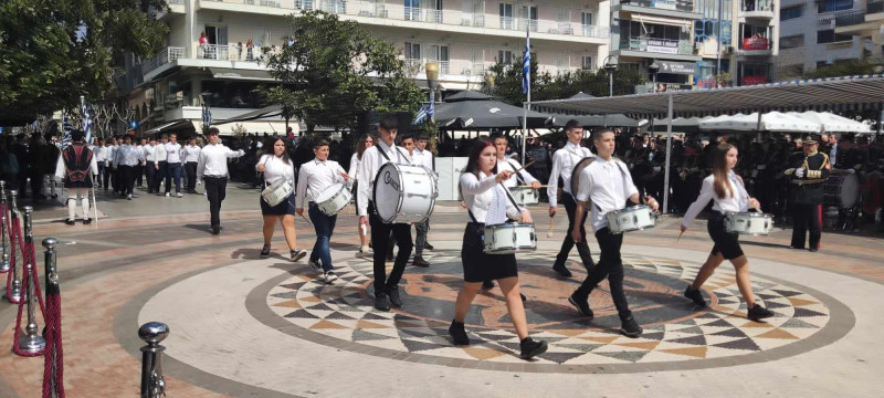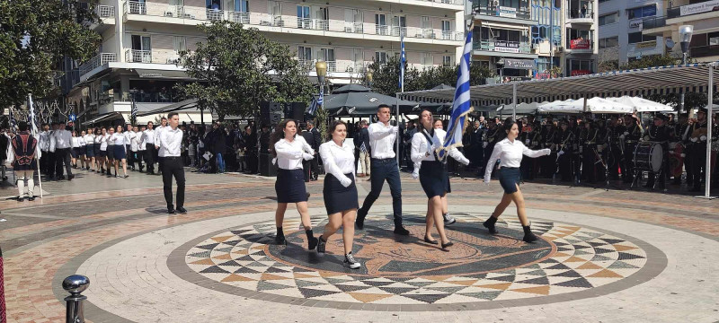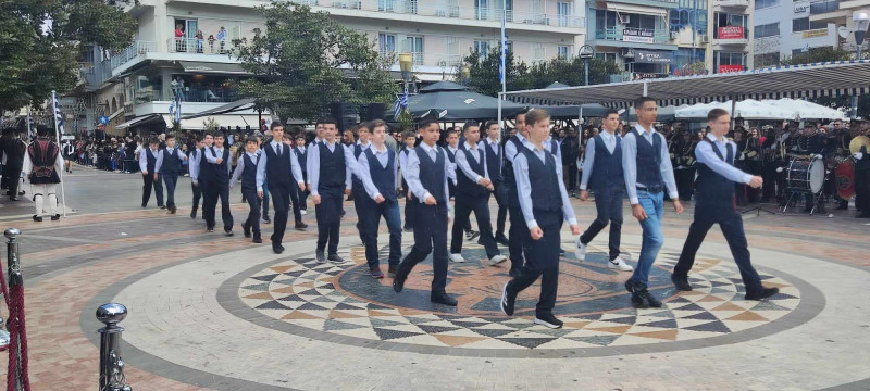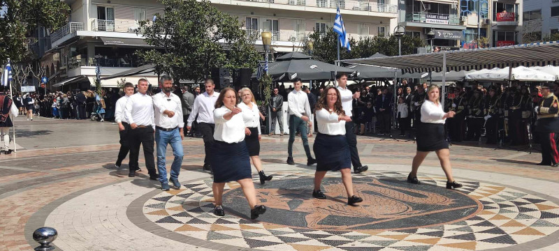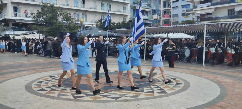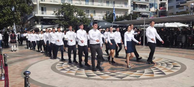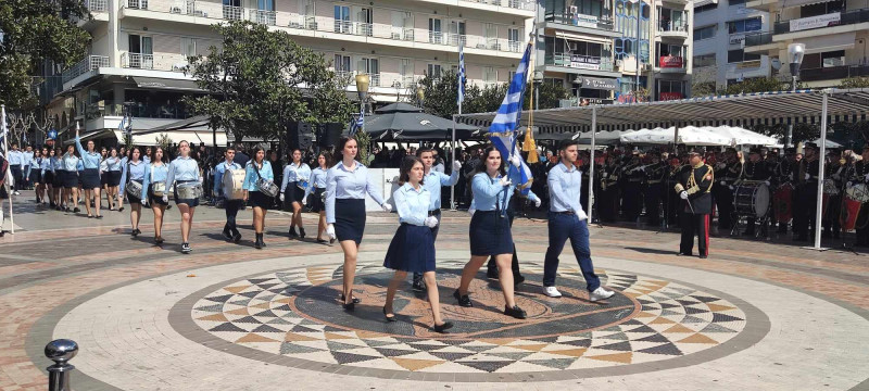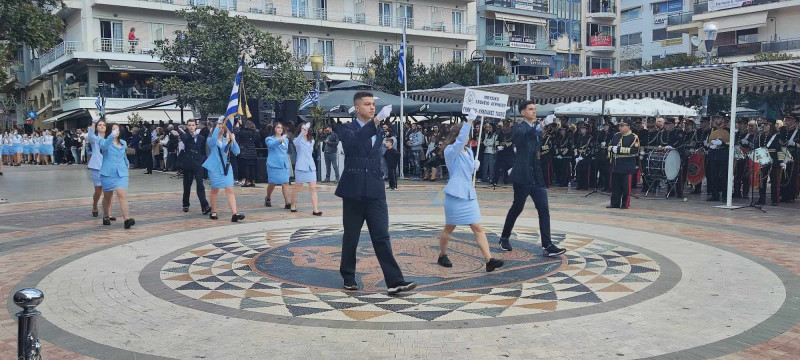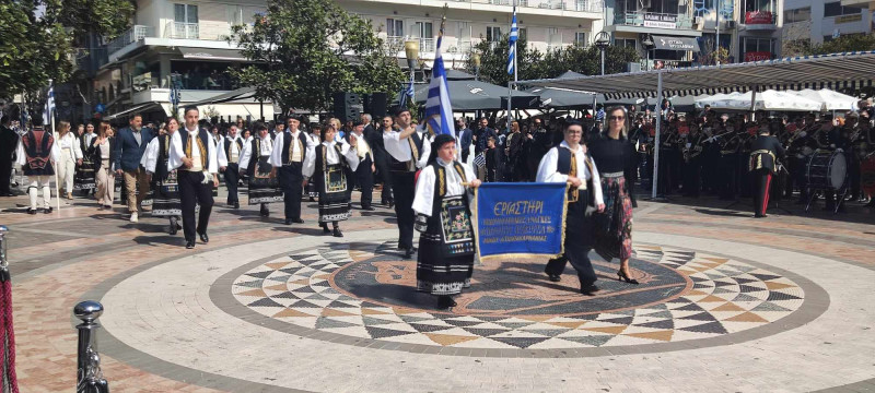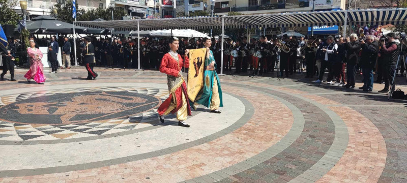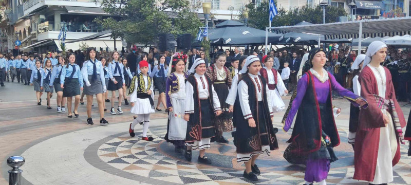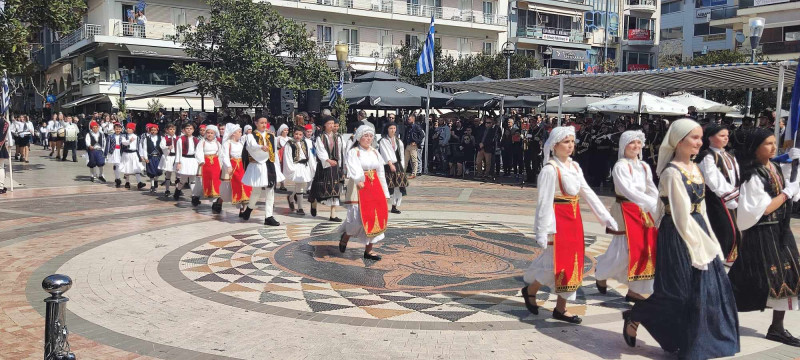 Το χρώμα του ελληνικού ουρανού και της θάλασσας σε συνδυασμό με το λευκό, τα χρώματα του ιερού μας συμβόλου, κυριάρχησαν στις ενδυμασίες μαθητών και μελών συλλόγων ενώ δεν έλειψαν και αυτές με το παραδοσιακό χρώμα.