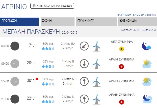 Τη Μεγάλη Παρασκευή 26 Απριλίου 2019 αναμένονται νεφώσεις στα νότια ηπειρωτικά και το Κεντρικό και Νότιο Αιγαίο, οι οποίες από το πρωί θα περιοριστούν στο Νότιο Αιγαίο.
