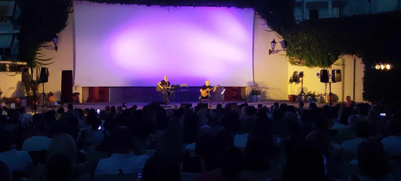 Ο δροσερός κήπος μετατράπηκε σε ιδανικό χώρο για μια συναυλία όπου κυριαρχούσαν η αισθαντική ερμηνεία του Χρήστου Θηβαίου και ο ήχος των χορδών από τον διεθνούς φήμης κλασικό κιθαρίστα Παναγιώτη Μάργαρη!