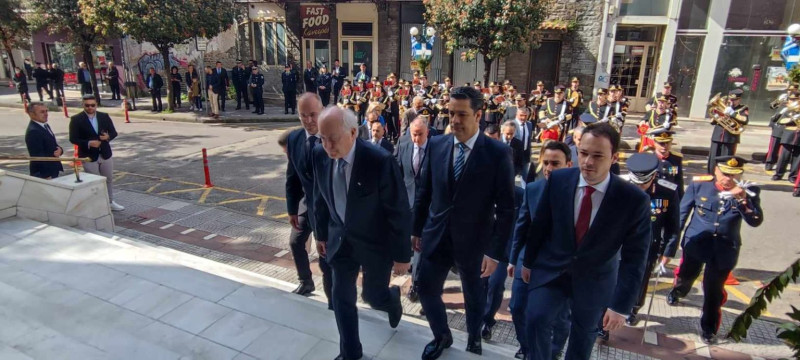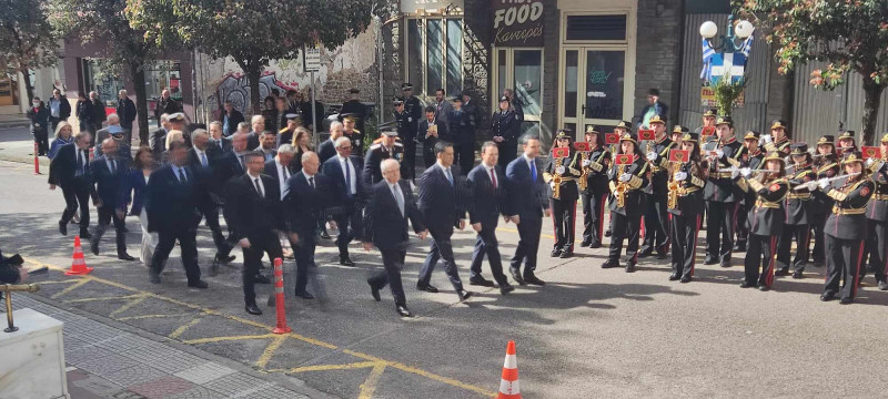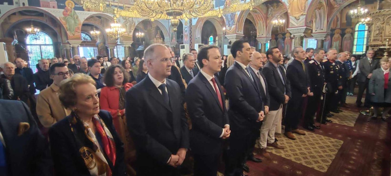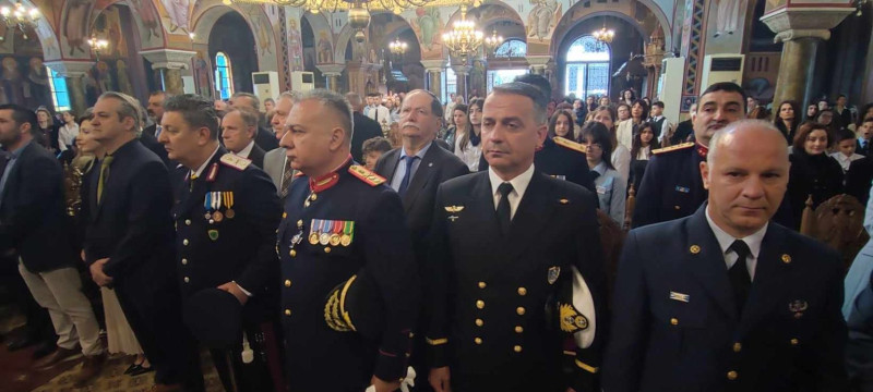 Στις 10:30 το πρωί, με την Φιλαρμονική του Δήμου να αποδίδει τιμές, εκπρόσωποι αρχών και φορέων έφθασαν στο ναό.