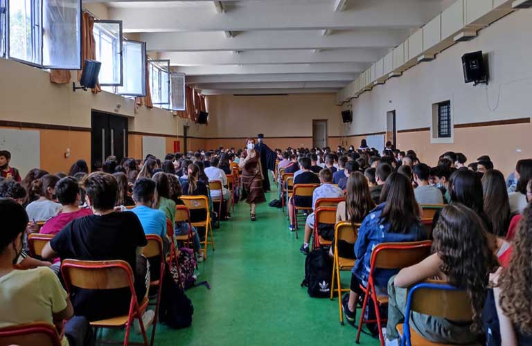 Ο Σεβασμιώτατος συνομίλησε για περίπου δύο ώρες με τα παιδιά στην αίθουσα εκδηλώσεων του Σχολείου, παρουσία των καθηγητών τους και απάντησε στις ερωτήσεις που του έθεσαν.