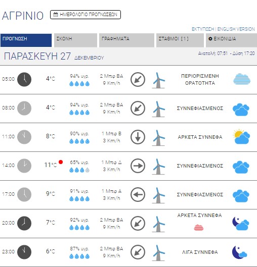 Νεφώσεις κατά τόπους και κατά περιόδους αυξημένες με βροχές τοπικού χαρακτήρα κυρίως στο Αιγαίο και στη Χαλκιδική όπου υπάρχει πιθανότητα εκδήλωσης μεμονωμένων καταιγίδων και ασθενείς παροδικές χιονοπτώσεις σε ορεινά τμήματα, περιμένουμε την Παρασκευή 27 Δεκεμβρίου 2019.