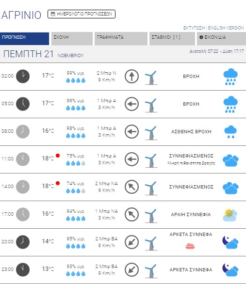 Αγρίνιο: Νεφώσεις με τοπικές βροχές – Έως 18 βαθμούς κελσίου η θερμοκρασία