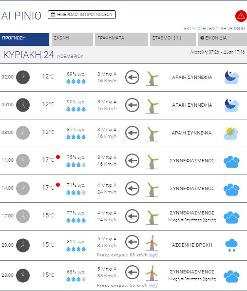 Αγρίνιο: Νεφώσεις με βροχές ή καταιγίδες – Έως 17 βαθμούς κελσίου η θερμοκρασία