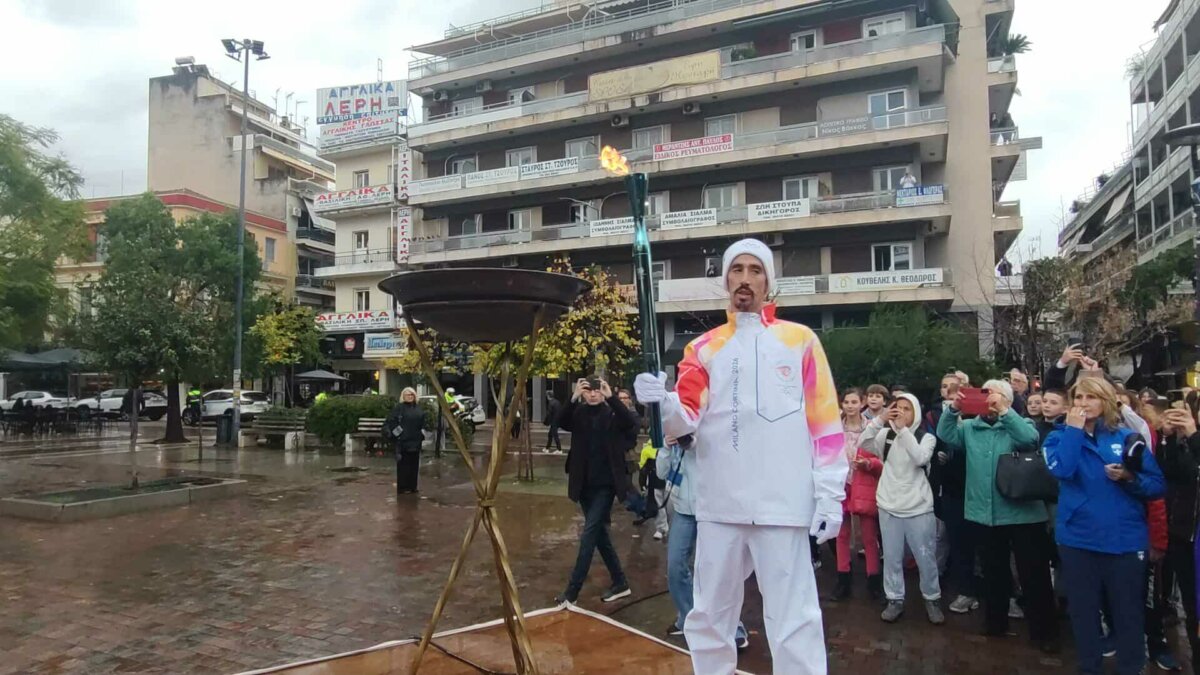 Αγρίνιο: Ο Κώστας Σταμούλης άναψε τον βωμό της Ολυμπιακής Φλόγας στην Πλατεία Δημοκρατίας