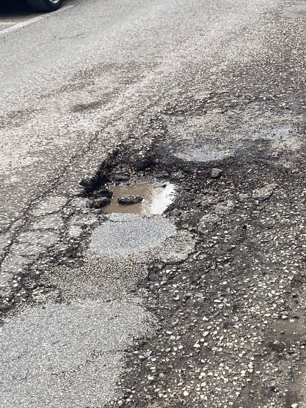 Η «μεγαλοπρεπέστατη» λακκούβα στη δεξιά άκρη του δρόμου, μόνο απαρατήρητη δεν μπορεί να περάσει!
