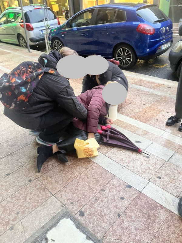 Στο σημείο επικράτησε αναστάτωση και τόσο καταστηματάρχες όσο και διερχόμενοι έσπευσαν να βοηθήσουν την άτυχη γυναίκα που σφάδαζε από τους πόνους.