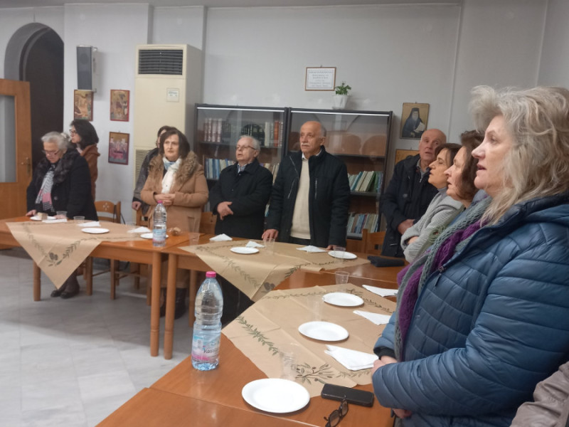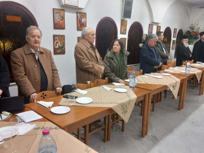 Ακολούθως στο πνευματικό κέντρο του Ναού πραγματοποιήθηκε η καθιερωμένη Κοπή της Βασιλόπιττας, όπου ο Πρόεδρος Σπυρίδων Παπαθανασίου ευχήθηκε στους παρισταμένους για το νέο έτος και για την εορτή των Τριών Ιεραρχών, τη γιορτή των Γραμμάτων και της ελληνορθόδοξης παιδείας. Τέλος ευχαρίστησε τους ιερείς του ναού και όλους τους διακονούντες σ’ αυτόν για την πολύ ωραία φιλοξενία τους.