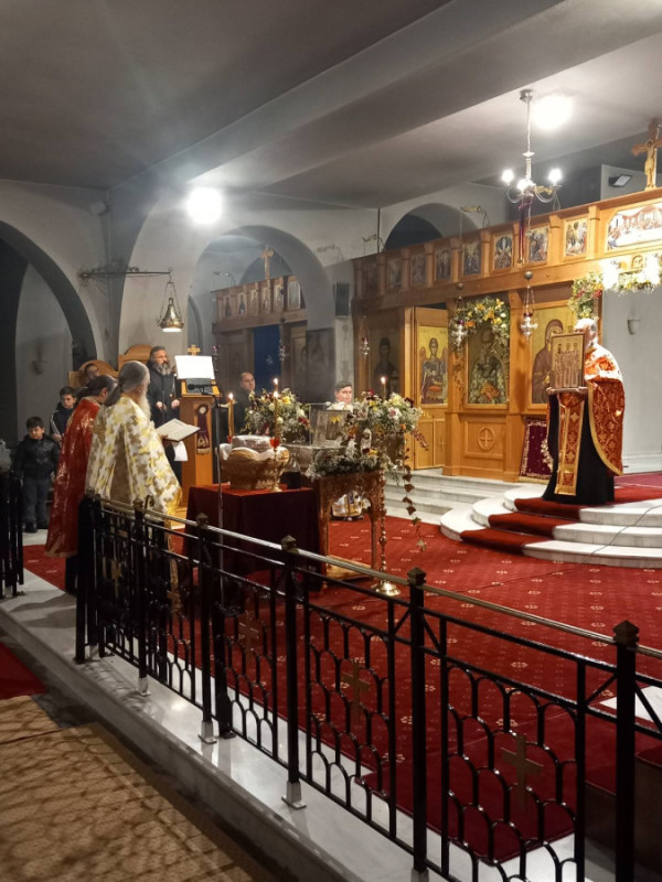 Κατά τη διάρκεια του εσπερινού ψάλθηκε αρτοκλασία υπέρ των Θεολόγων κληρικών και λαϊκών και των οικογενειών των. Με επίκαιρο και σύγχρονο λόγο σκιαγράφησε τους Τρεις Μεγίστους Φωστήρας Βασίλειο τον Μέγα, Γρηγόριο τον Θεολόγο και Ιωάννη τον Χρυσόστομο, κάμνοντας αναφορά στο έργο τους, τη διδασκαλία τους, τη παρακαταθήκη, που μας άφησαν και τη συμβολή στην όλη προσωπικότητά τους των μητέρων τους ο Πρωτοπρεσβύτερος π. Ευάγγελος Φεγγούλης, εφημέριος ιερού ναού Αγίου Κωνσταντίνου και Ελένης Αγρινίου.