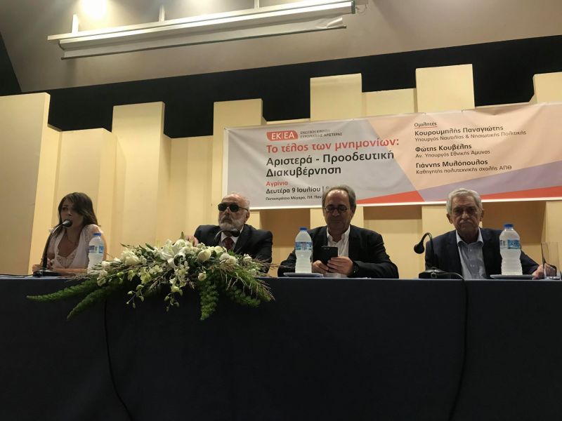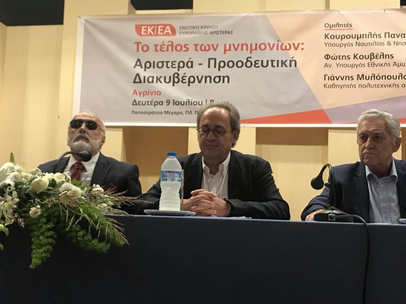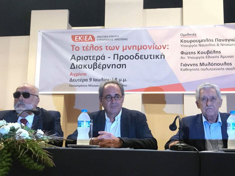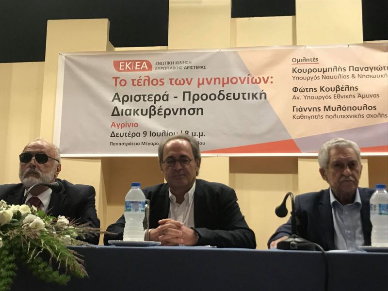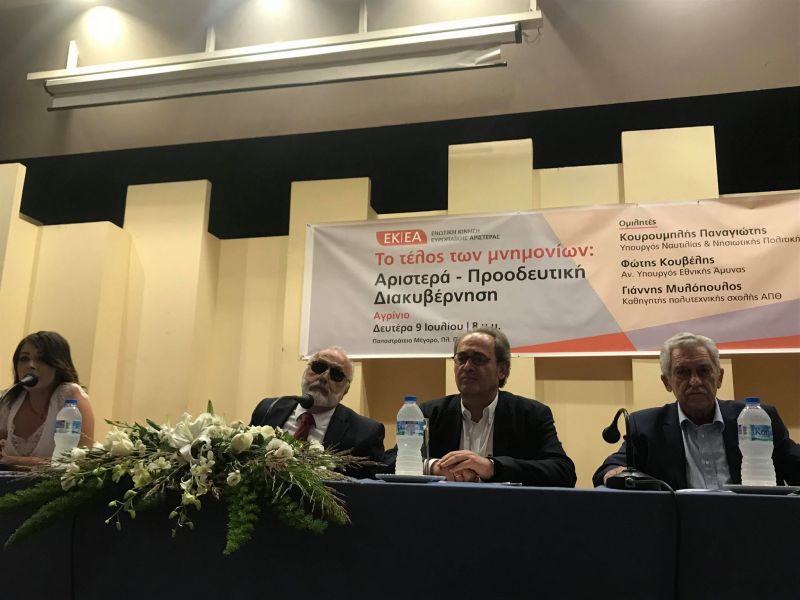«Το τέλος των μνημονίων: Αριστερά-Προοδευτική Διακυβέρνηση», είναι το θέμα εκδήλωσης που βρίσκεται σε εξέλιξη στο Αγρίνιο με ομιλητές τον Φώτη Κουβέλη, αναπληρωτή Υπουργό Εθνικής Άμυνας, και τον Παναγιώτη Κουρουμπλή, Υπουργό Ναυτιλίας και Νησιωτικής Πολιτικής.