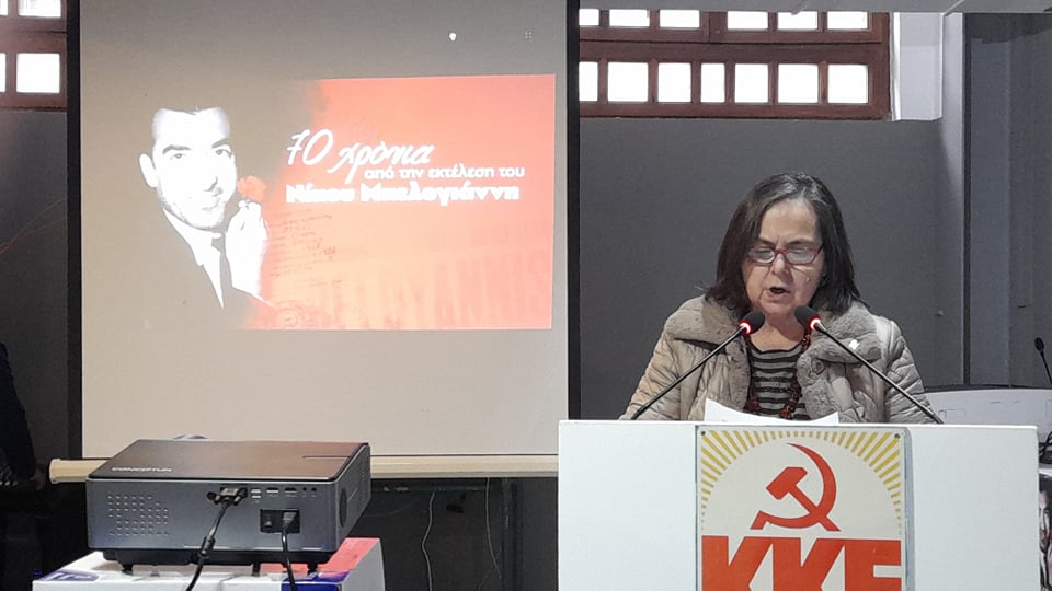 Το Σάββατο, πραγματοποιήθηκε η παρουσίαση του βιβλίου «Το αστικό πολιτικό σύστημα στην Ελλάδα, από το 1950 έως το 1967». Την παρουσίαση έκανε ο Αναστάσης Γκίγκας, μέλος του Τμήματος Ιστορίας της Κ.Ε. του Κ.Κ.Ε. Επίσης, έγινε η προβολή 20λεπτου βίντεο για τη ζωή του Νίκου Μπελογιάννη.