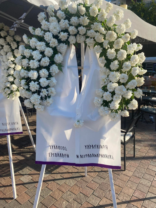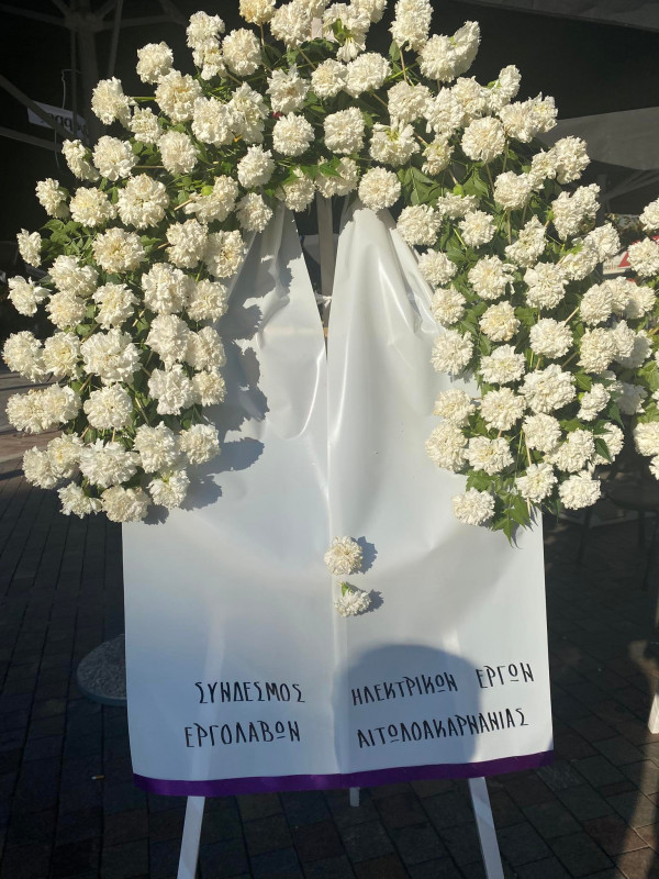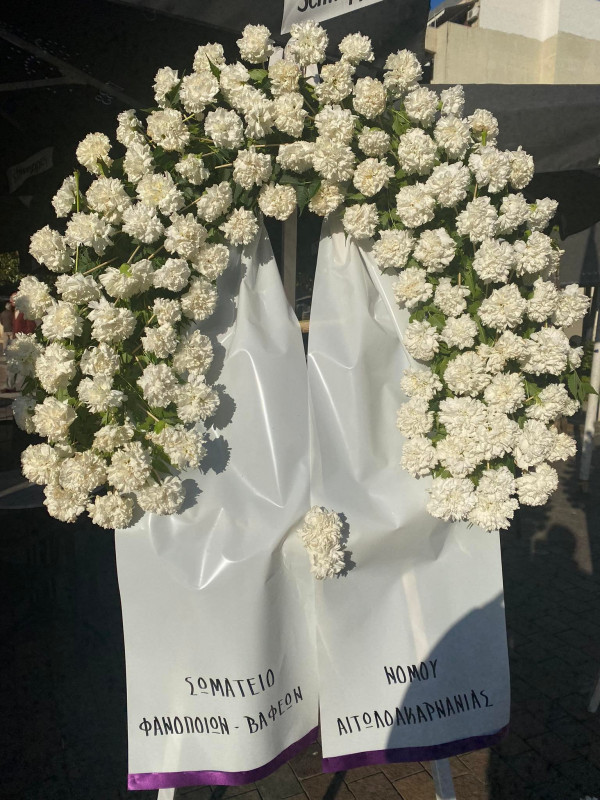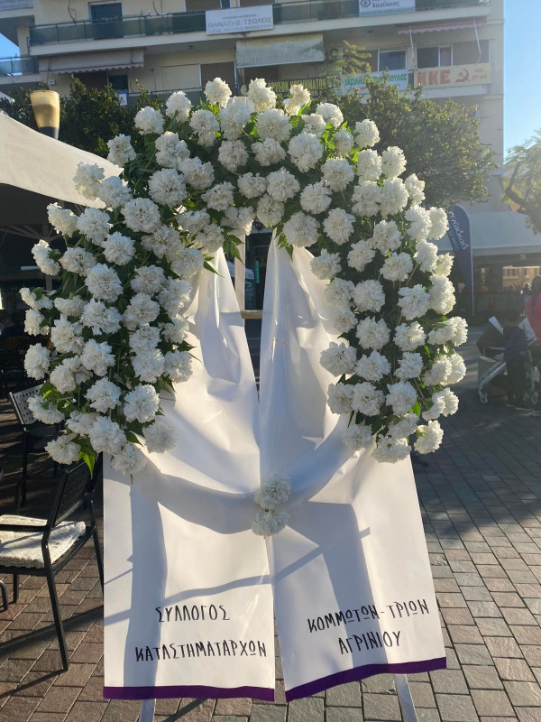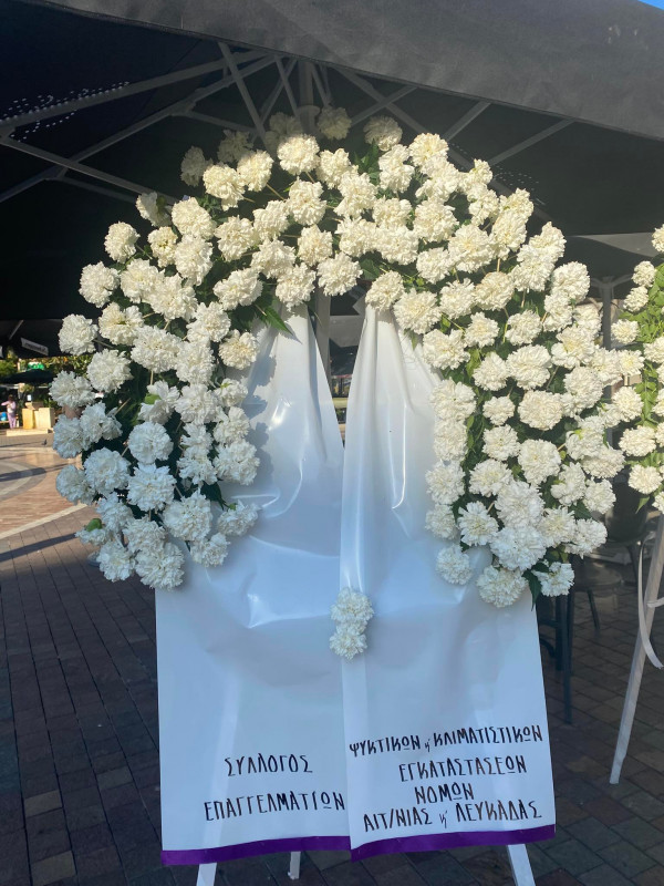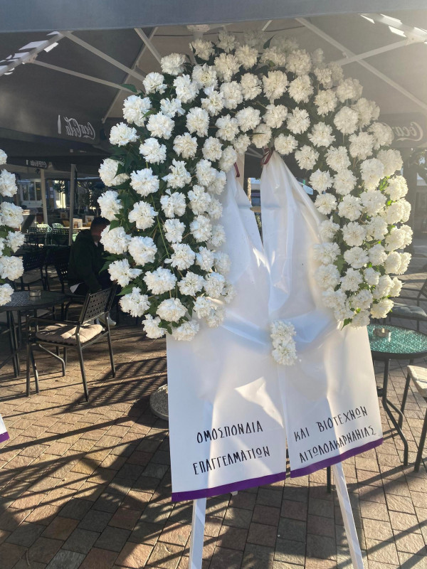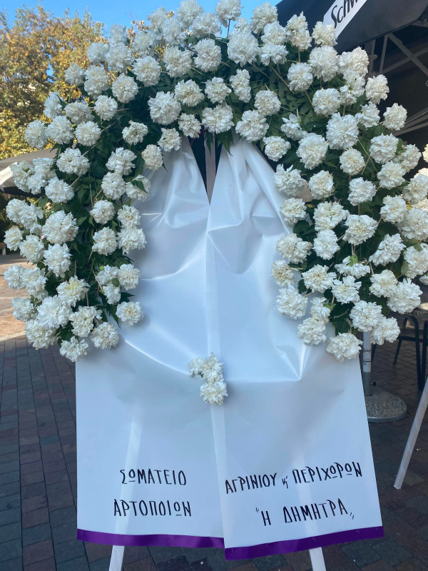 Αυτή την ώρα στην Κεντρική Πλατεία του Αγρινίου, Ομοσπονδίες, Σύλλογοι και Ενώσεις της Αιτωλοακαρνανίας έχουν αφήσει και από ένα στεφάνι, σαν αυτά που φτιάχνονται για κηδείες.