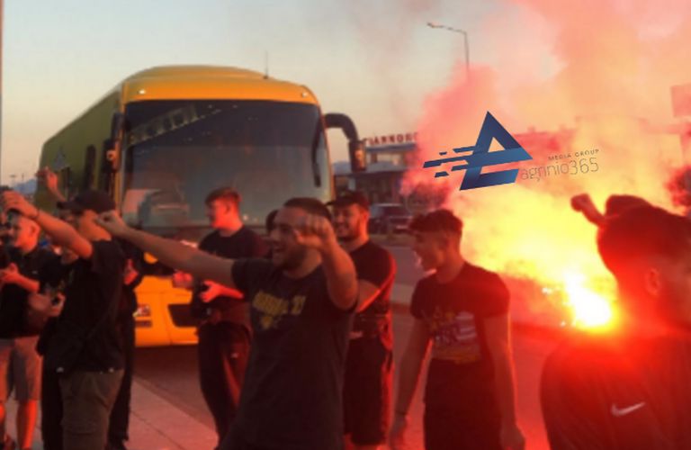 Ένθερμοι υποστηρικτές της Α.Ε.Κ. υποδέχθηκαν την αποστολή με συνθήματα και καπνογόνα.