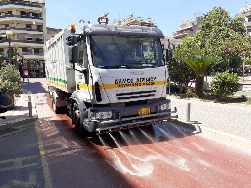 Συνεργεία του Δήμου Αγρινίου πραγματοποιούν εκτενείς παρεμβάσεις απολυμαίνοντας πλατείες, δρόμους, πεζοδρόμια και κάδους απορριμμάτων.