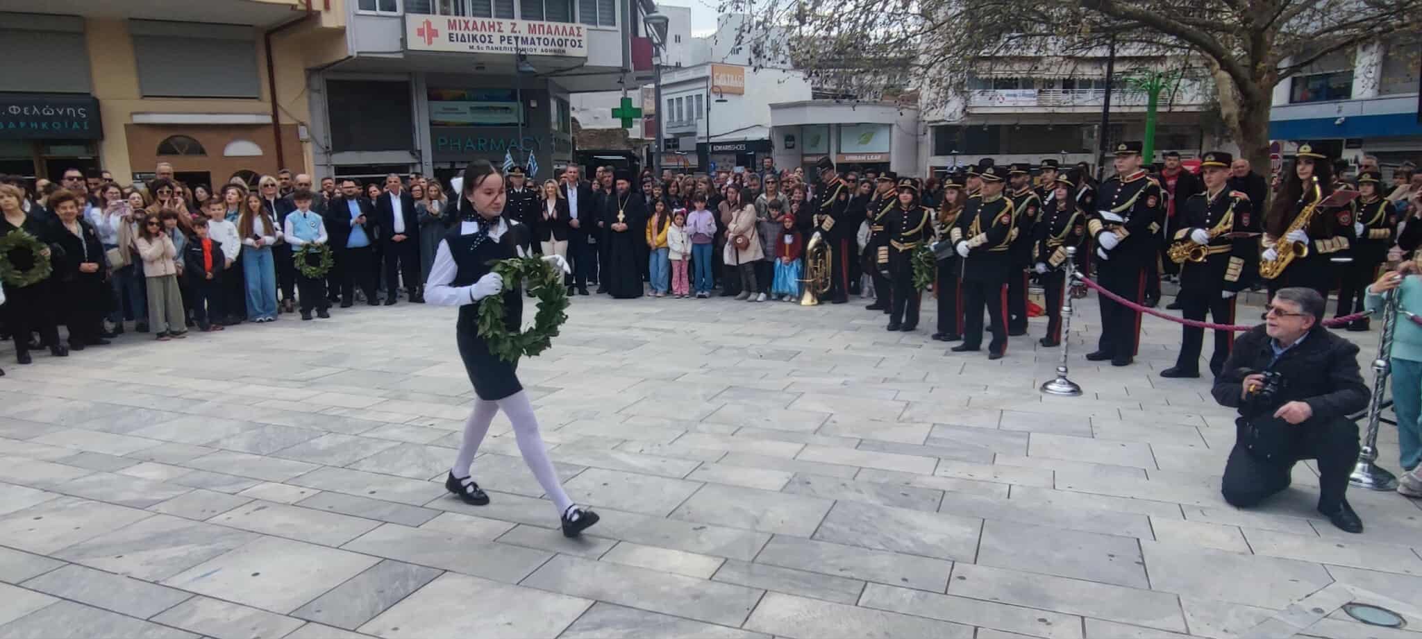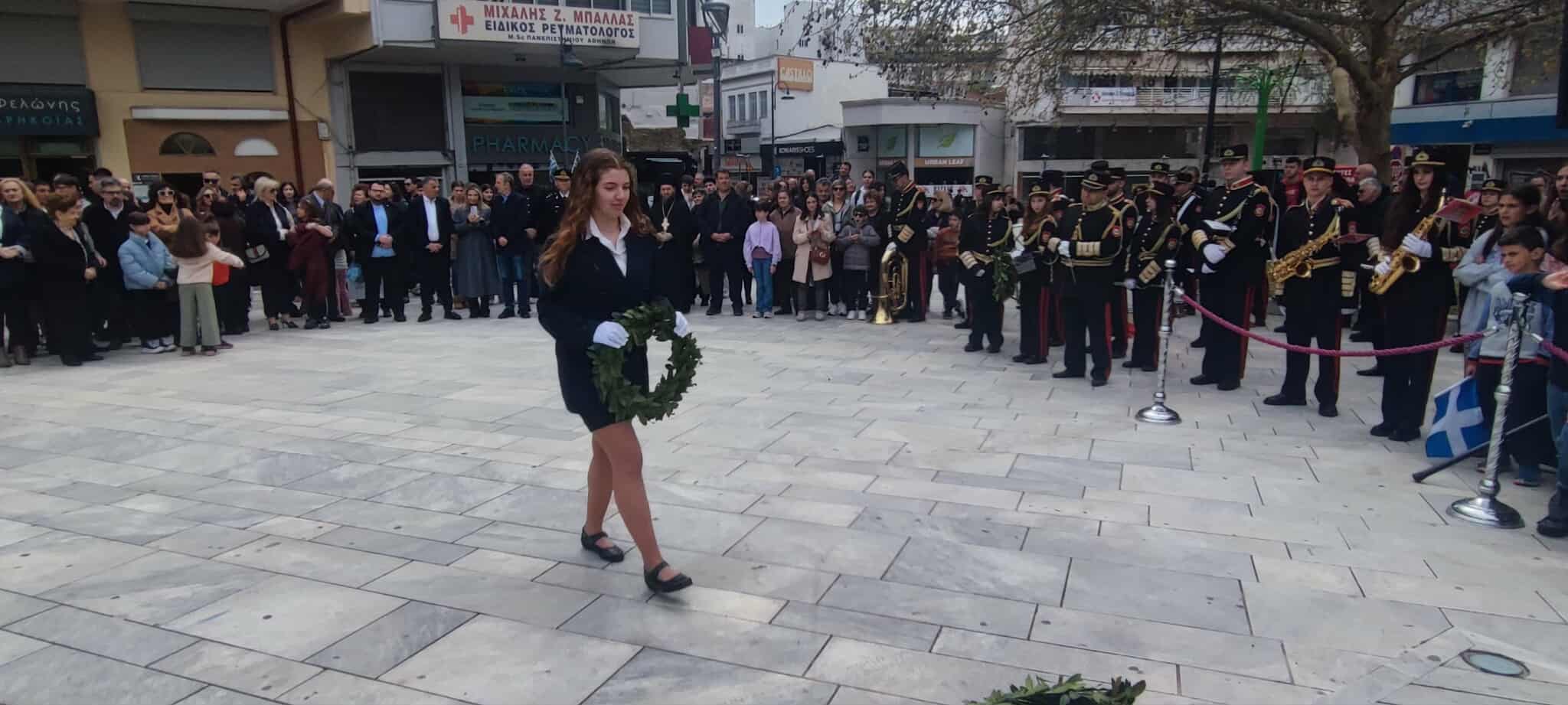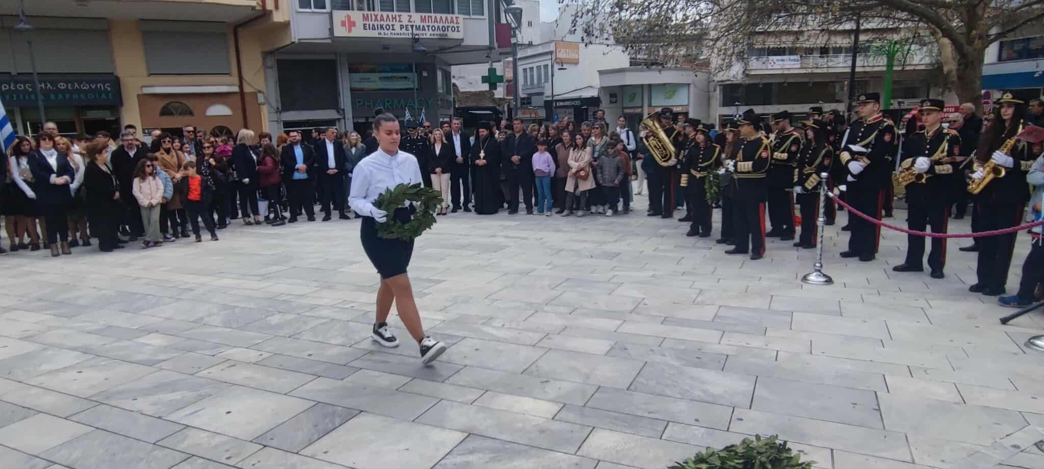 Στο Αγρίνιο και φέτος την Παραμονή της 25ης Μαρτίου τελέστηκε επιμνημόσυνη δέηση και μετά ακολούθησε κατάθεση στεφάνων στο μνημείο, στην Πλατεία «Μαρίας Δημάδη».